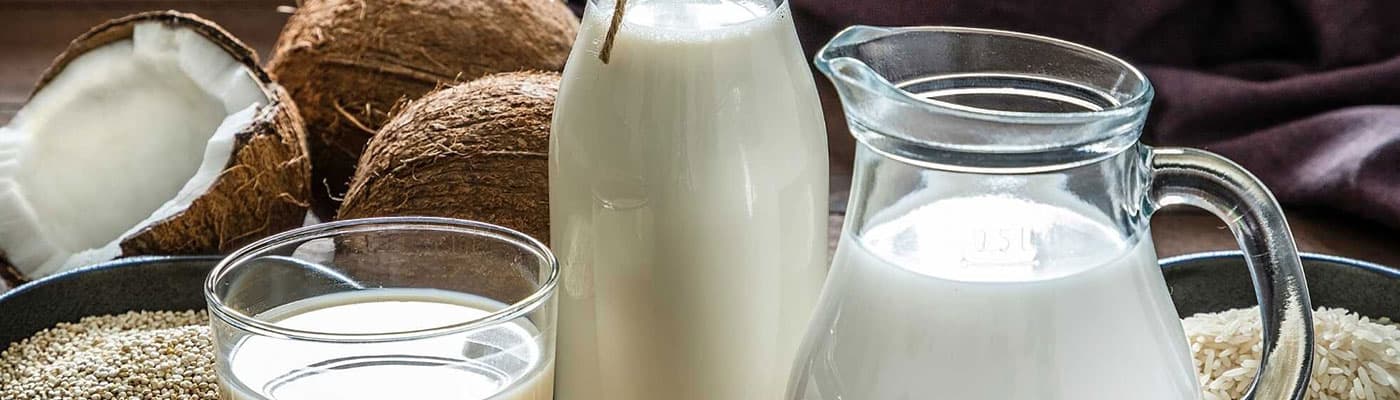 U biljna mlijeka koja imaju vrlo malo proteina spada na primjer kokosovo mlijeko, zobeno mlijeko, rižino mlijeko.